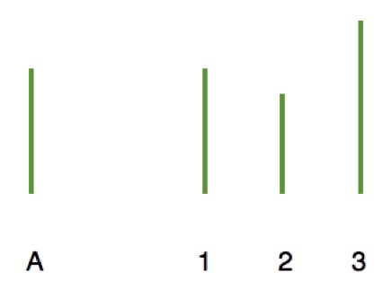 On doit associer le segment A avec celui de même taille 1,2 ou 3.